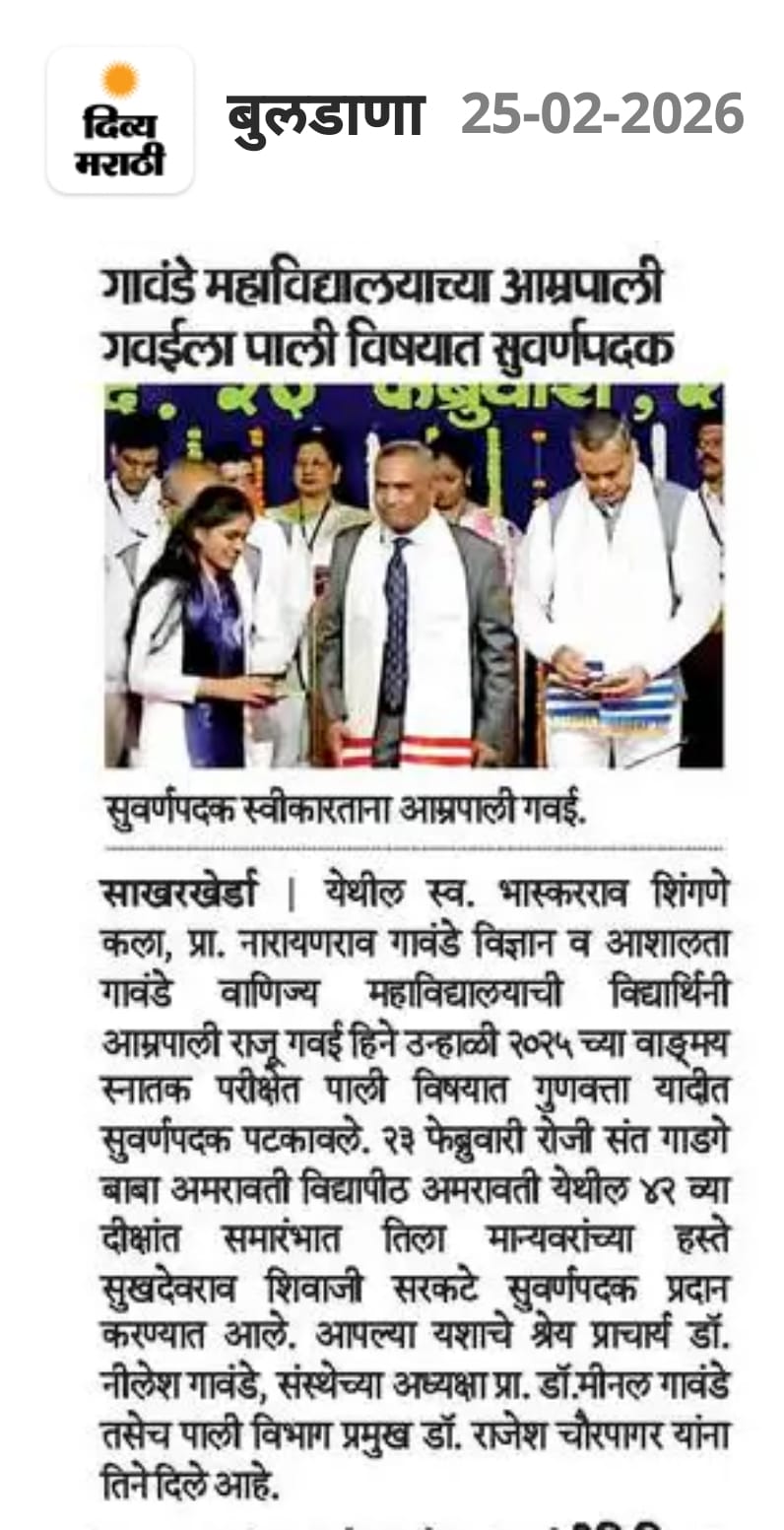 It gives me great pleasure to welcome you to Late. Bhaskarrao Shingane Arts, Prof. Narayanrao Gawande Science & Ashalata Gawande Commerce College, Sakharkherda. The College is committed to excel in teaching, training, and capacity building. To communicate character education has always been an important objective of our education system. We have constantly endeavored to teach good values and good citizenship to the students. See More...